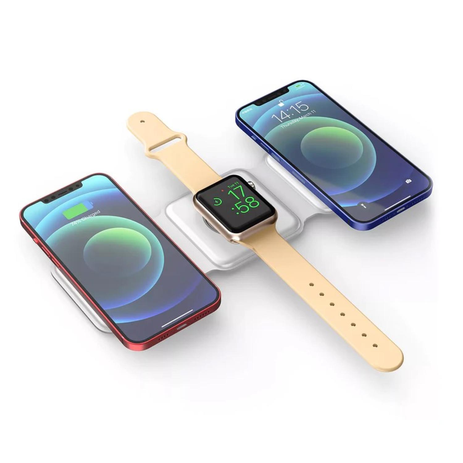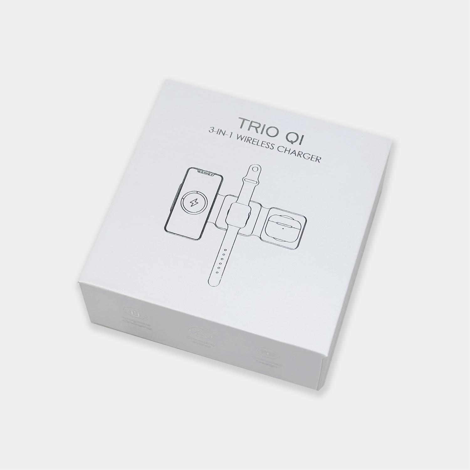 The original, patented charger that changed the way we charge on the go! Our Trio Qi compact 3-in-1 travel charger that offers exceptional portability and charging versatility with its tri-folding design. Featuring 3 top-side printing locations that showcase your brand prominently at all times. Each packed in premium presentation gift box.